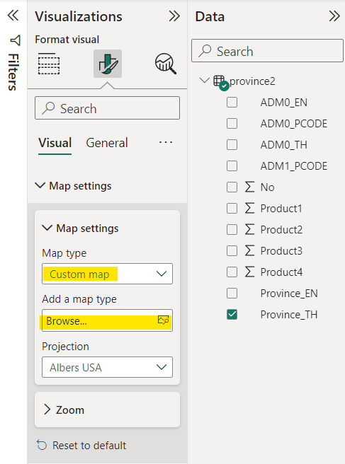 ต่อมาเลือกตรงที่ USA: states ปรับเป็น Custom map (Map Type)