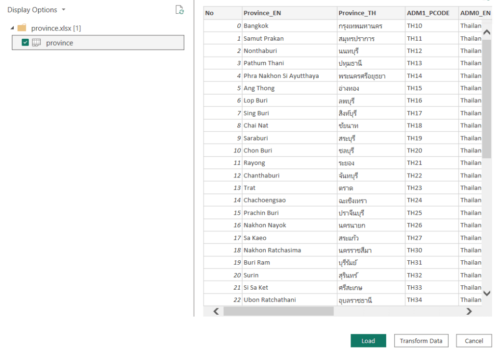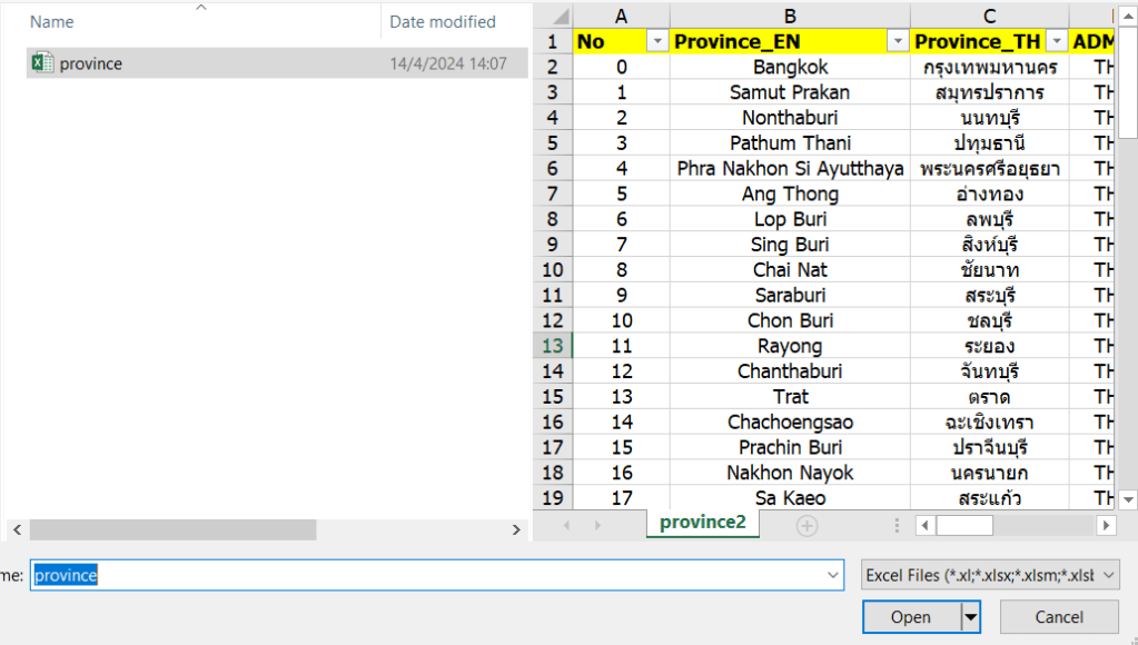 ทำการ Import Data จาก Excel เข้ามา ซึ่งไฟล์นี้จะเป็นไฟล์ที่ชื่อว่า province ข้อมูลระดับจังหวัดนั่นเอง ซึ่งไฟล์นี้ ทุกคนสามารถไปเพิ่มข้อมูลด้านอื่นๆเข้ามาใส่ได้ เช่น ยอดขาย รายได้ หรือ ข้อมูลอื่นเข้ามา